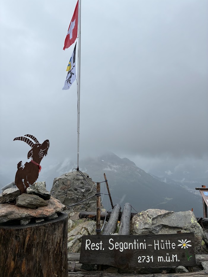 モータスムラーユ展望台からアルプラングワルドへのハイキング。悪天候の中、なんとかセガンティーニ小屋に到着。