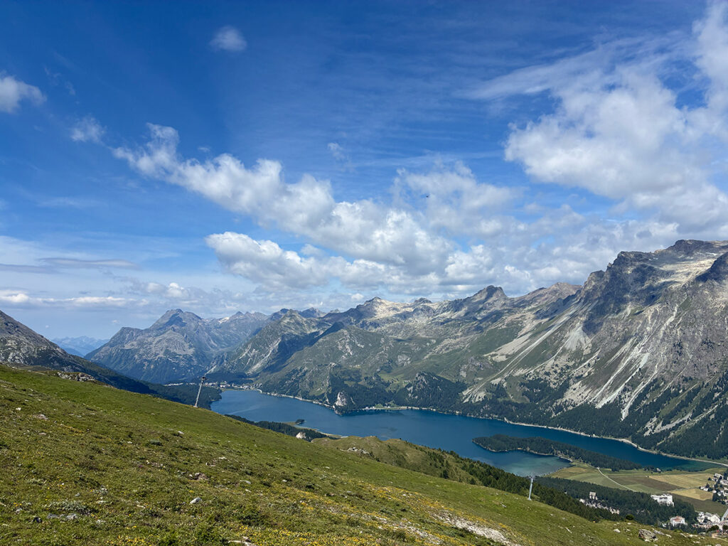 コルヴァッチ展望台へ。標高3000mを超えるアルプスの雄大な眺望に圧倒されました。再度ゴンドラに乗り、中間駅からスールレーユ峠を往復。ピッツロゼック、ピッツ・ベルニナを眺めながらのピクニックランチは最高でした。街に戻ってサンモリッツを散策し、セガンティーニ美術館を訪問。セガンティーニのアルプス三部作「生・自然・死」を目の前にして、これからこの景色を実際に歩くのだと思うと、ワクワクと高揚感で胸がいっぱいになりました。