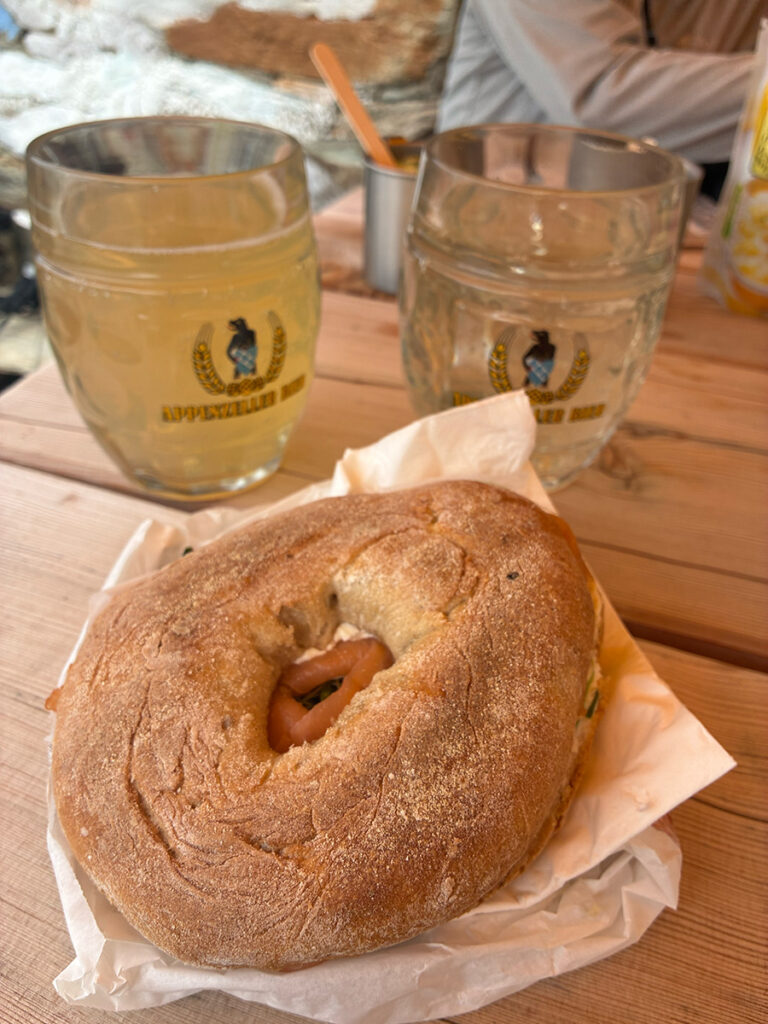 ポントレジーナを後にして、FEX谷へ。ホテル近くのベーカリーでサンドイッチを購入し、バスとロープウェイを乗り継いでフルチェラス展望台へ。そこからFEX谷を目指してハイキング。Alp Muntの山小屋でランチ。店員さんおすすめのローズマリーシロップ入りジュースは中ジョッキほどの大きさで驚きましたが、とても美味しかったです。